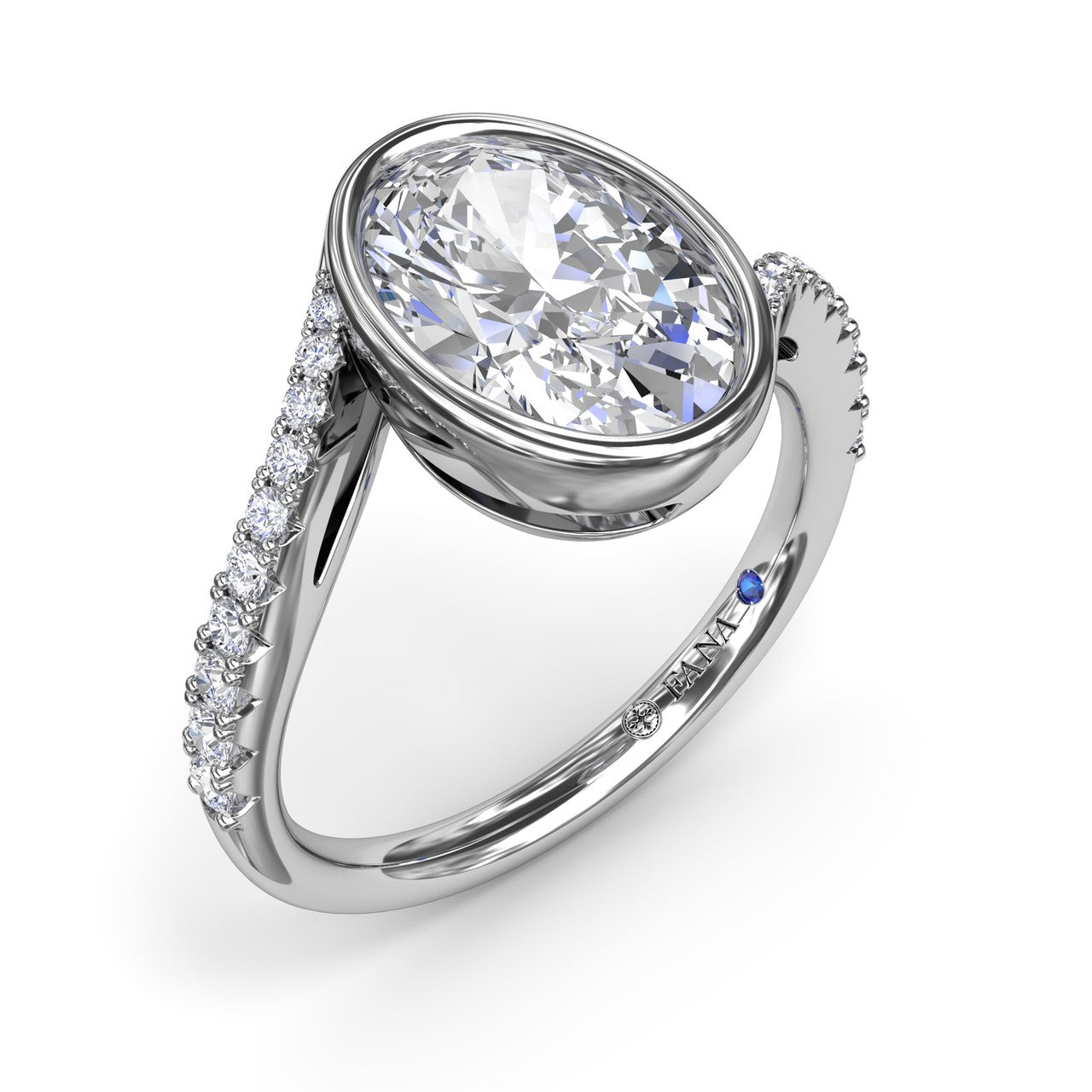 This feminine bypass engagement ring showcases fluid, sculptural lines of diamonds that gracefully wrap around a bezel-set oval diamond, creating a modern and sophisticated design. This style can be customized based on stone shape and metal preference.