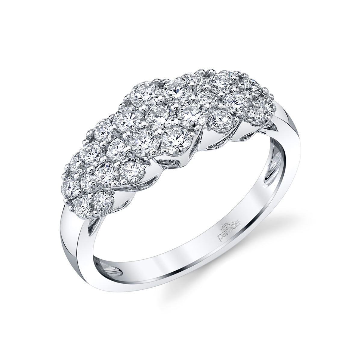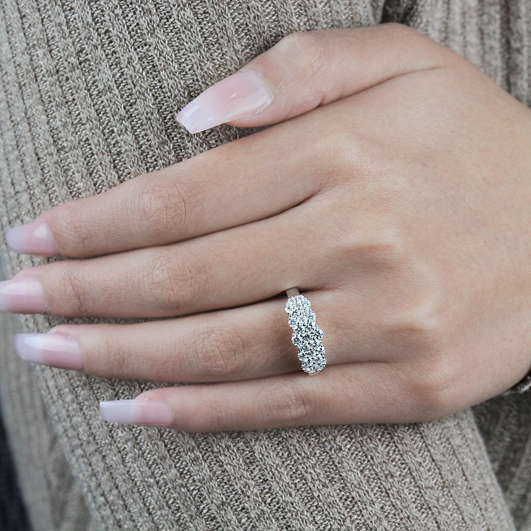 A cluster of brilliant round diamonds embodies this singular visual sensation.